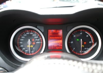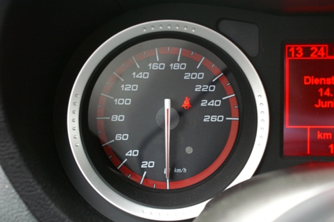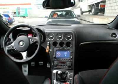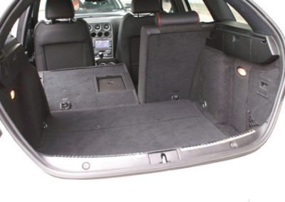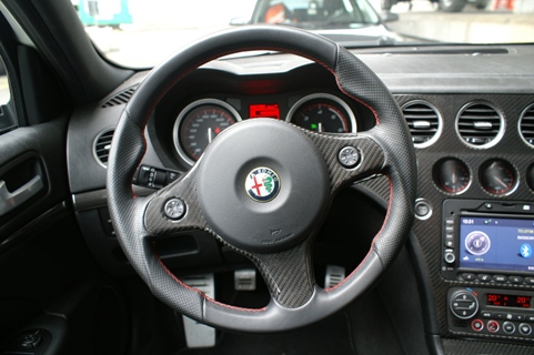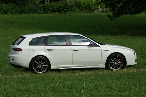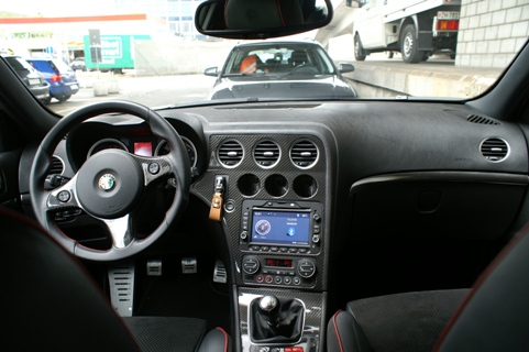 Nun aber den SW entern! Ganz sportlich fällt man tief in den bequemen und mit guten Seitenhaltbietenden Sitz. Die drei Uhren für Tank, Motortemperatur und Ladedruck lassen das Sportlerherz höher schlagen. Mit der in Karbon gefassten Mittelkonsole bringt es dem Besitzer die Sportlichkeit noch näher ans Herz. Die ganzen Armaturen sind ergonomisch platziert. Die Materialien zaubern beim Berühren mit den Fingerkuppen ein Lächeln auf Gesicht des stolzen Alfisten. Die Verarbeitung richtet sich an den Vorgaben der Oberklasse. Die Bedienung braucht etwas Eingewöhnung, es scheint nicht immer alles logisch zu wirken. Die Klimaautomatik ist ungünstig hinter dem Schaltknüppel platziert, so dass sie oft ohne den Willen des Fahrers verstellt wird. In der zweiten Reihe lassen sich gut zwei Personen unterbringen. Auch für eine längere Reise mit Gepäck. 445 Liter ist kein besonderer Wert für das Gepäckabteil, aber vier Koffer finden Platz, wenn sie einmal über die hohe Kante gehievt wurden. Für kleinere Transporte lässt sich die Rückbank umklappen und gibt einen Raum von 1235 Liter frei.