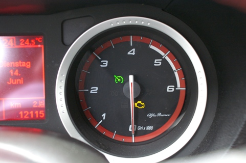 Den Schlüssel in den Schlitz stecken und den Motor mittels Startknopf zum Leben erwecken. Der 2-Liter-Diesel-Motor meldet sich mit leichtem Nageln zum Dienst. Mit steigenden Kühlwassertemperaturen wird der Ölbrenner kultiviert. Beim Tritt auf das Gaspedal muss der Turbolader zuerst die ganze Luft sammeln, um dann mit einer Wucht von 170 PS und 350 Nm vorwärts zu traben. Das Turboloch macht sich ganz besonders beim Losfahren bemerkbar, da die Leistung erst ab 2000/min kommt. Dafür entschädigt er mit einem, für einen Diesel, sehr sportlichen Ton und Drehwilligkeit. Mit dem sportlich ausgelegten Fahrwerk macht jede Kurve Lust auf mehr. Der Verstand muss immer das Hirn und das Sportlerherz wieder auf den Boden zurück holen. Der Verstand erfreut sich indes auch über den niedrigen Verbrauch von 6.6 Liter Diesel auf 100 km. Dies können zwar andere noch besser, aber nicht mit dem vom Alfa gebotenen Temperament .