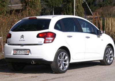 Citroën bietet für alle Diesel-Motoren im C3 die Start-/Stopp-Automatik an. Im Testwagen funktionierte sie sehr gut, und dies auch zu den während der Testzeit herrschenden Minusgraden. Bei jedem Ampelstopp stellt das System den Motor ab – ohne grosses Ruckeln. Das Verstummen erfolgt schon bei 20 km/h und lässt den C3 an den Stopp heranrollen. Durch das Einlegen des Leerlaufs und das Loslassen der Kupplung gibt man der Automatik das Stoppzeichen. Während der Ruhephase überprüft die Elektronik, ob die Batterieleistung für einen erneuten Start des Motors nicht zu sehr sinkt. Zusätzlich wird dafür gesorgt, dass der Komfort im Innenraum nicht leidet. Sprich, es im Winter nicht zu kalt und im Sommer nicht zu heiss wird. Hier zeigt sich schon der erste Pluspunkt. Der Motor wird abgestellt, und man muss nicht auf die Klimaanlage verzichten. Wer sich in der stehenden Kolone in einer Talfahrt befindet, kann den C3 bis 20 km/h rollen lassen, ohne dass der Motor anspringt. Dies lassen nur sehr wenige Konkurrenten zu. Auch die elektrische Servolenkung und Bremsen arbeiten weiterhin wie gewohnt. Durch das Treten des Kupplungspedals wird der Citroën wieder fit für die Weiterfahrt gemacht. Mit dieser Technik wird vorallem in der Stadt der eine oder andere Liter Diesel gespart. Im Test liefen 4.9 Liter auf 100 km durch die Common-Rail-Düsen. Ein guter Wert, denn die Testzeit lag im Winter mit zweistelligen Minusgraden.
