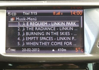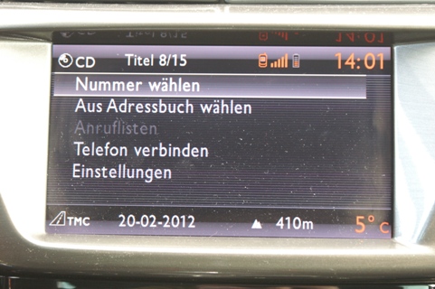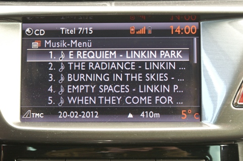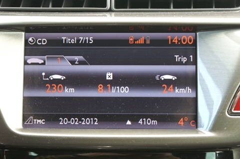 Auf den Vordersitzen sitzt man bequem, jedoch mit geringem Seitenhalt. Der Blick über das Armaturenbrett hinterlässt, bezüglich Materialmix und Verarbeitung, einen guten Eindruck. Für die Bedienung gibt es nicht so lobende Worte. Vor allem die Lenkradfernbedienung, die sich hinter dem Lenkrad versteckt, ist nicht optimal. Alle Funktionen müssen auswendig gelernt werden, denn während der Fahrt danach zu schauen, wäre verantwortungslos. Die Bedienung von Radio und Navi ist ebenfalls nicht optimal, da die Knöpfe weit unten in der Mittelkonsole angebracht sind. Dafür entschädigt die gute Darstellung des Bildschirms. Dort befindet sich sogar eine Anzeige für die Dauer, welche der Motor seit dem Schlüsseldreh stand. So wird man auch darüber informiert, wie lange man vor einer Ampel oder im Stau steht.