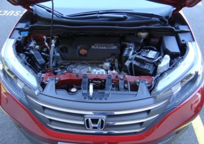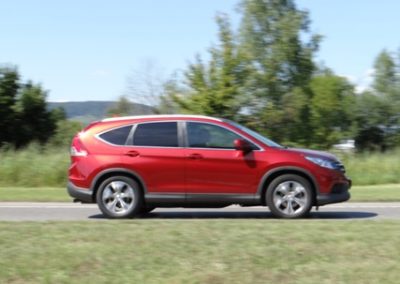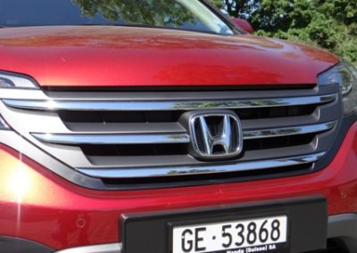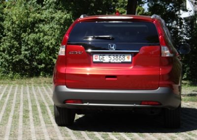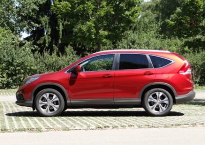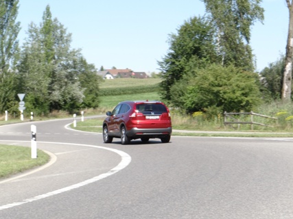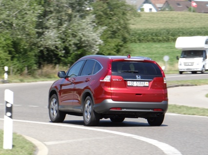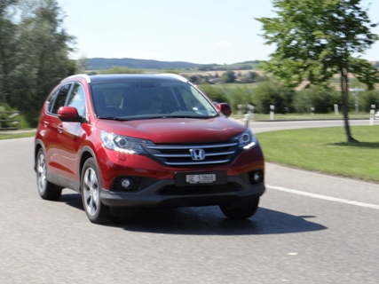 Ein Druck auf die Start-Taste erweckt den 2,2-Liter-Diesel-Motor zum Leben. Es muss hin gehorcht werden, um ihn wahr zu nehmen. Nun den Wählhebel der 5-Gang-Automatik auf „D“ rücken, und der CR-V bewegt sich langsam vorwärts. Die ersten Meter geben dem Fahrer ein gutes Gefühl, sicher unterwegs zu sein. Auf Teer wiegt der Honda seine Passagiere gemütlich und komfortabel über die Strasse. Einzig derbe Unebenheiten lässt der Japaner gelegentlich durch. Auf der ersten Geraden wird der Motor auf seine Potenz geprüft. Ein Gaspedalstoss gegen das Bodenblech lässt den CR-V ohne grosse Aufregung und mit Nachdruck nach vorne streben. Mangelnde Leistung (150 PS und 350 Nm) kann dem Japaner nicht angekreidet werden. Die Kurven kommen auf den Honda zu. Bei denen zeigt die komfortable Abstimmung bald Grenzen auf. Der Honda fängt schnell an, über die Vorderräder zu schieben. Doch einmal auf der Autobahn, frisst der SUV sehr gerne Kilometer, ohne seine Mitfahrer zu stressen. Der Testverbrauch kann sich auch sehen lassen – für diese Klasse und Automat. Mit 6.7 l/100 km (Diesel) gehört der Honda zu den Sparsameren.