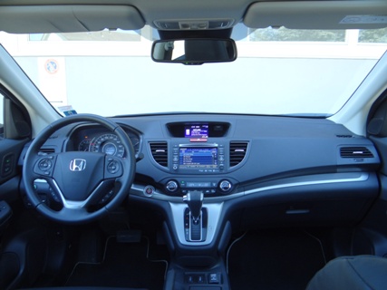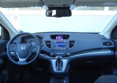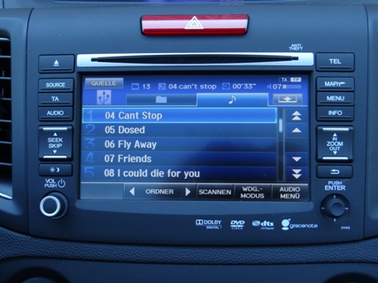 Der Honda bietet vorne wie hinten reichlich Platz zum Reisen. Auf der Rückbank lässt sich sogar zu dritt eine längere Strecke zurück legen. Die Logenplätze befinden sich im CR-V natürlich vorne. Da lässt es sich gemütlich reisen. Man sitzt zwar hoch, doch der Innenraum strömt Limousinenfeeling aus. Auch dank des kurzen Schalthebels, der hoch sitzt. Die solide Verarbeitung des Cockpits zaubert ein Lächeln ins Gesicht des Fahrers. Sieht er jedoch auf das Lenkrad, ziehen sich seine Mundwinkel wieder nach unten. So viele Knöpfe muss das Gehirn erst einmal verarbeiten. Erschwerend kommt die umständliche Bedienung hinzu. Zum Beispiel muss die Spracheinstellung dreimal eingestellt werden. Angefangen beim Bordcomputer, weiter zum Display in der Mitte auf der Konsole, bis hin zum Navigations-Bildschirm. Zum Glück verzichteten sie nicht auf Direkttasten, sodass nicht alles über den Touchscreen bedient werden muss.