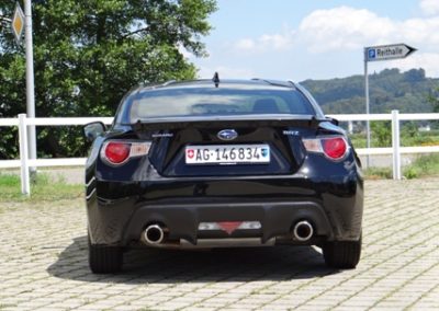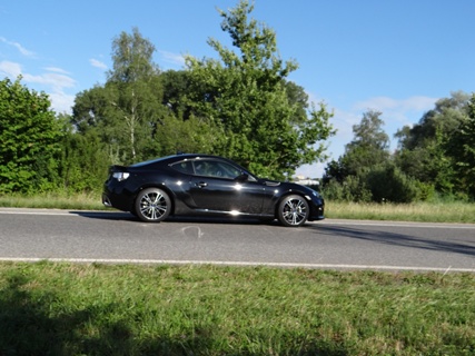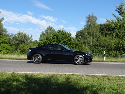 Tür auf und sich in den Japaner fallen lassen. So ganz einfach ist es nicht, etwas hinein schlaufen muss man sich schon und man sitzt tief zur Strasse hin. So integriert starten wir den Motor per Knopfdruck. Es meldet sich ein 2-Liter-Boxer aus dem Bug. Ganz nach Tradition der Marke Subaru, übrigens gilt dies auch für die rahmenlosen Fenster. Der sportliche Sound stimmt auf eine heitere Fahrt ein. Ersten Gang rein. Der geht mit etwas Nachdruck, knackig in die erste Gasse. Auf den ersten Metern bemerkt man im BRZ die straffe Federung. Es kommt fast alles an Unebenheiten beim Fahrer an. Doch ein Tritt aufs Gaspedal lässt dies schon wieder vergessen. Die 200 PS ziehen, pardon stossen den Subaru nach vorne. Genau, hier werden die Hinterräder angetrieben, wie es sich für Sportcoupés gehört. Der Japaner braucht Drehzahl, damit die volle Kraft ausgeschöpft wird. In den Kurven macht der BRZ noch mehr Spass. Er zieht stoisch um Ecken und das ESP lässt leichte Heckschwenks zu. Ein Druck auf die Sporttaste lässt den Subaru dann quer kommen, aber dies ist mehr für abgesperrte Pisten oder Profis. Auch mit eingeschaltetem ESP kommt man auf seinen Genuss. Der hört jedoch auf, wenn man einige Stunden auf der Autobahn unterwegs ist. Dafür konsumiert der Japaner gute 7.4 Liter auf 100 km.