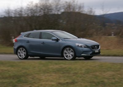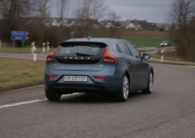Nun aber zum Fahren an sich. Der Fahrer sitzt tief, jedoch bequem. Die Verarbeitung im Innenraum zeigt sich von der Schokoladenseite und muss sich somit gar nicht hinter der Konkurrenz verstecken. Einzig die Bedienung braucht einige Eingewöhnungszeit – mit den vielen, zum Teil kleinen Knöpfen. Startknopf drücken, und der 1.6-Liter-Diesel (D2) meldet sich zum Dienst. Mit seinen 115 PS fährt der Volvo nicht untermotorisiert, sondern pflegt einen guten Vorwärtsdrang. Und dies mit einem niedrigen Testverbrauch von 4.8 l/100 km. Dies auch dank der serienmässigen Start-/Stopp-Automatik für alle Motoren und Getriebe. Auf den ersten Meter fällt schon mal die Härte des Fahrwerks auf, die auf Autobahnen die Schläge ans Kreuz weitergibt. Durch Kehren zeigt sich der Volvo von seiner sportlichen Seite. Selten konnte ein Volvo von früher so um Kurven gescheucht werden. Nun noch der Preis: Ab Fr. 31‘150.- steht ein V40 D2 in der Garage.