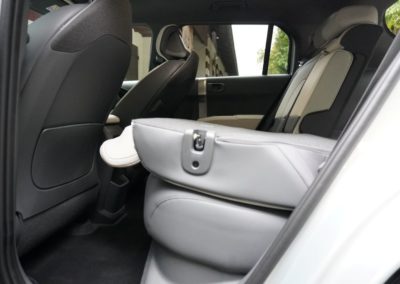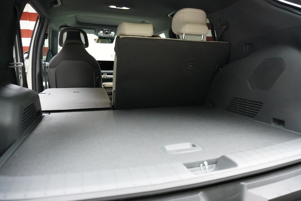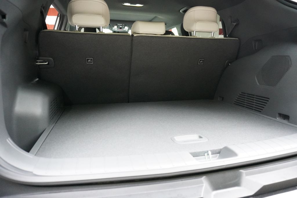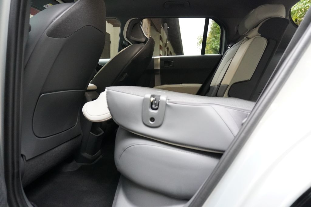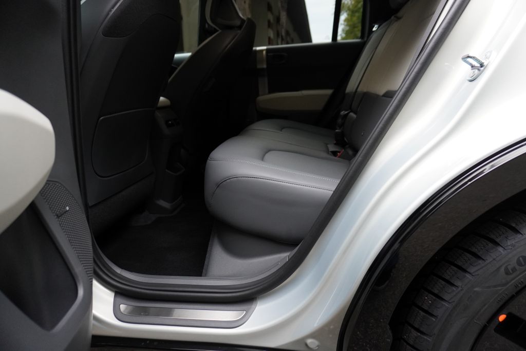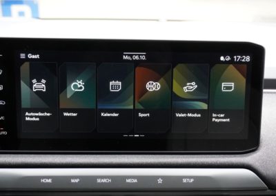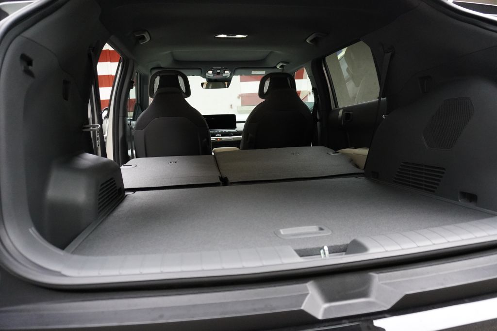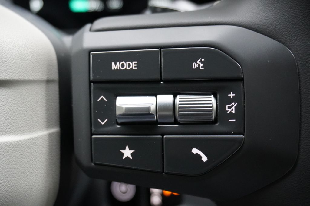 Ob jetzt eine 800 oder 400 Volt-Technik unter dem Blechkleid steckt spielt an der Wallbox zu Hause noch nicht eine Rolle. Der EV3 lädt hier auch innerhalb von acht Stunden seinen Akku voll. Interessanter wird es am Schnelllader, hier kann der Kompakt-SUV logischerweise nicht so schnell laden wie seine grösseren Geschwister. Doch er schafft von 10 auf 80 % in guten 32 Minuten. Schön gelöst die Klappe am EV3 für den Schnelllader. Andere Hersteller haben nur eine Kappe, die dann unschön herunterhängt. Nun schauen wir uns Innen um, da wir ja eh warten müssen. Die Sitze sehen gut und bequem aus. Wir setzen uns und stellen fest, es ist auch so. Man schaut auf ein helles Lenkrad und wir sind schon mal glücklich über echte Tasten. Vor dem Volant thront ein Display, das sich nach rechts zieht bis zum Infotainment. Hier vermissen wir dann schon echte Tasten, denn auch die Klimaautomatik wird über den Touchscreen bedient. Das Infotainment ist auf der Höhe der Zeit. Es kann das Smartphone auch kabellos spiegeln per CarPlay und AndroidAuto. Zu viert reist man sehr gut im Kia und bringt noch Gepäck unter von 460 Liter. Unter der Motorhaube gibt es auch noch Stauraum, leider ist der zu klein um das Ladekabel unter zu bringen und muss somit hinten untergebracht werden.