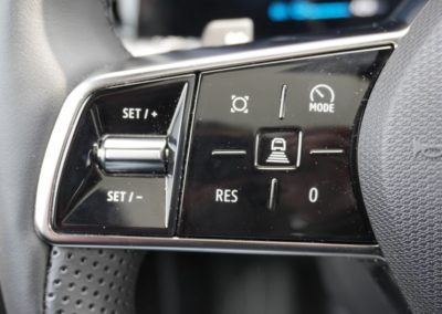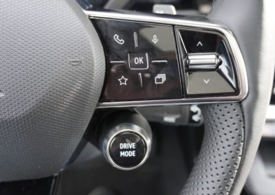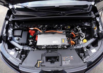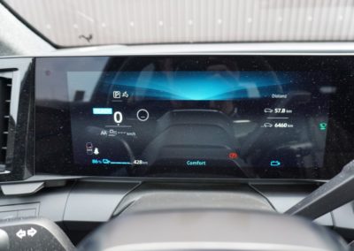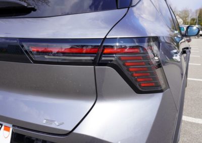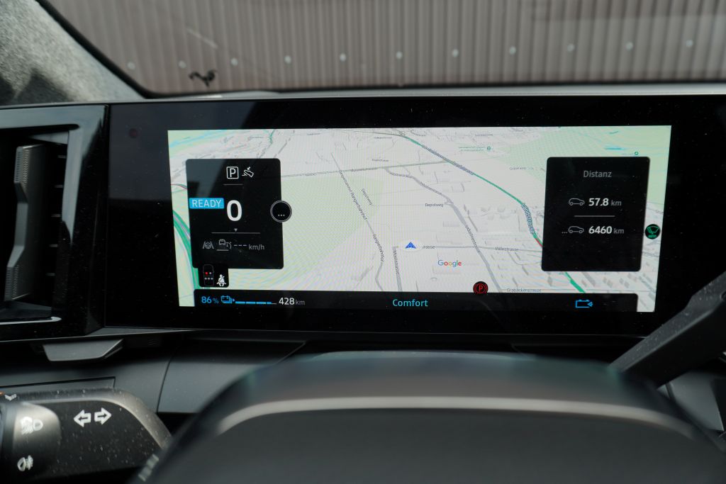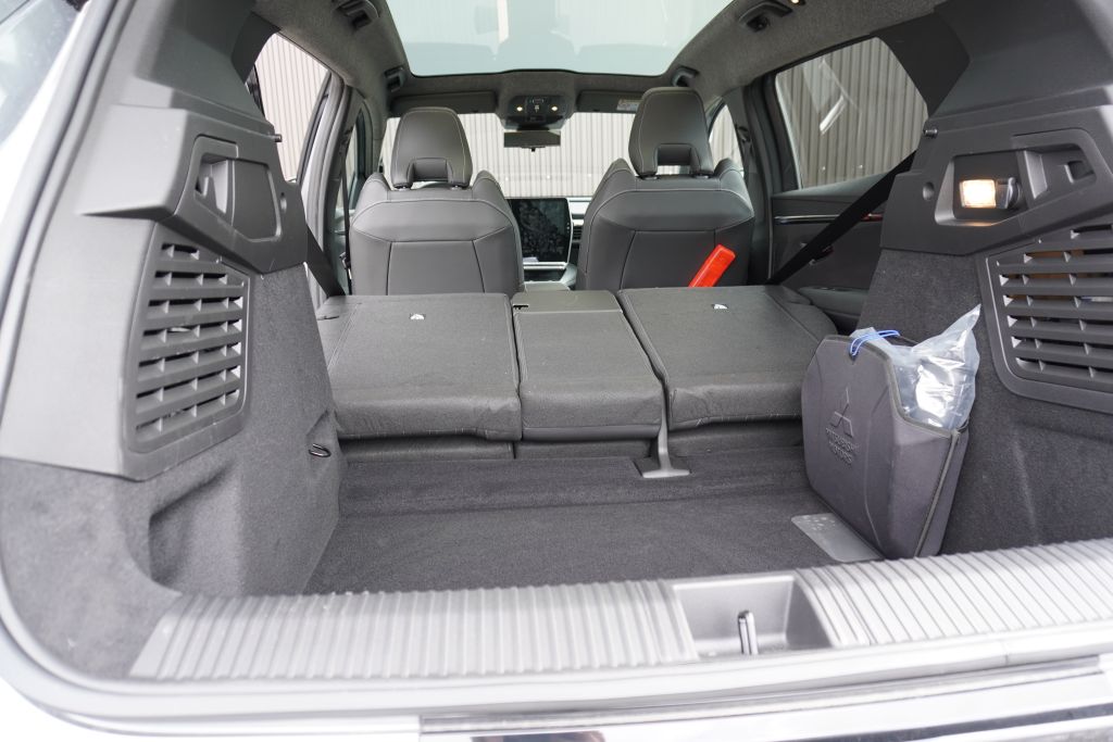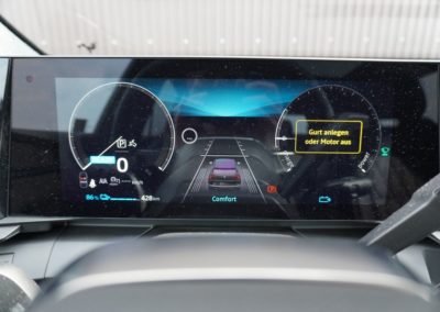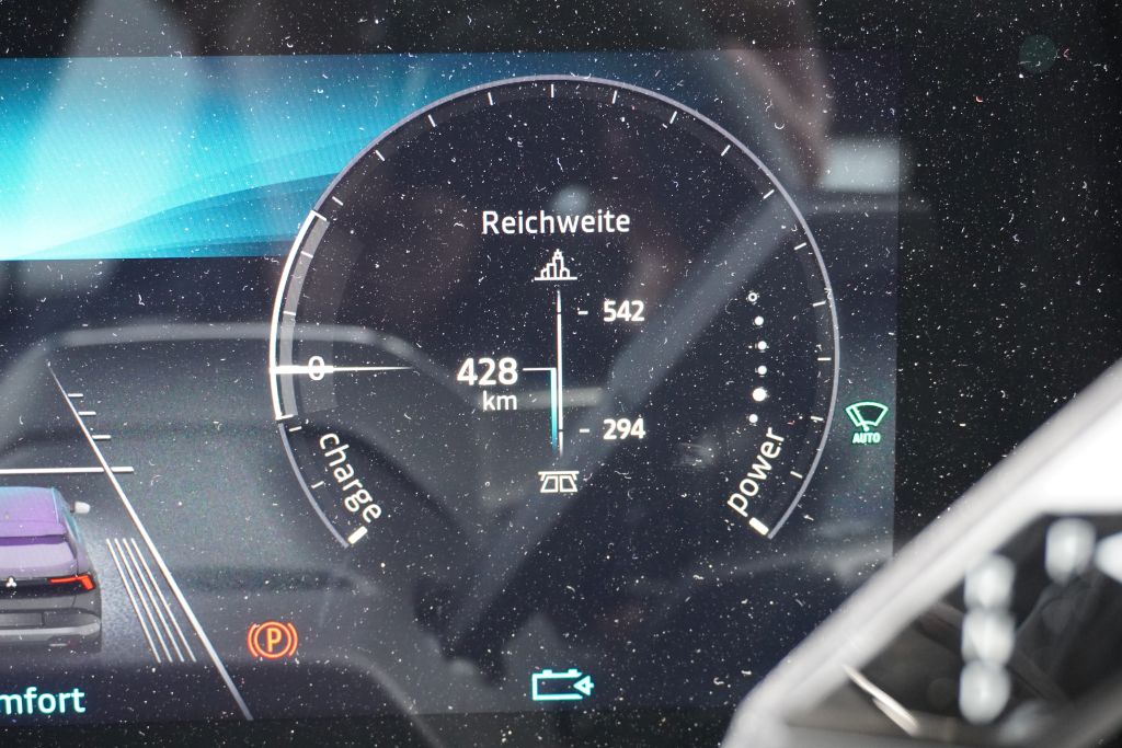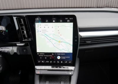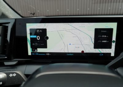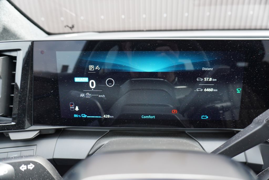 Somit spricht der Mitsubishi mehr Kunden an und die Front hat ein eigenes Gesicht, sodass man nicht gleich die Verwandtschaft mit Renault erkennt. Nun füllen wir erst mal den 87 KWh Akku. An der heimischen Wallbox geht dies in sechs Stunden über die Bühne. Schnellladen geht natürlich auch und dies schafft er in durchschnittlichen 45 Minuten. Hier gibt es Bessere im Umfeld. Setzten wir uns in den Eclipse und hier merkt man dann ganz klar, dass es ein Renault ist. Dies soll überhaupt nicht negativ sein, denn der Hochkanttouchscreen ist in vieler Sicht positiv. Er kann mehrere Anzeigen übereinander anzeigen. z.B. die Navikarte und unten Information zu Auto, Radio etc. Man kann auch die Klimasteuerung anzeigen lassen und was sehr gut ist, man steuert sie auch über echte Tasten. Top! Auch die Lenkradtasten sind gut lesbar und bedienbar. Hinter dem Lenkrad wird es dann aber mühsamer. Zum einem steckt dort der Wählhebel, denn man schnell mit dem Wischerhebel vertauscht. Oder die Bedienung der Radio/Medienwiedergabe versteckt sich als Bedieninsel und muss erst auswendig gelernt werden. Sonst hat man aber zu viert gut Platz und bringt noch gute 545 Liter Gepäck unter.