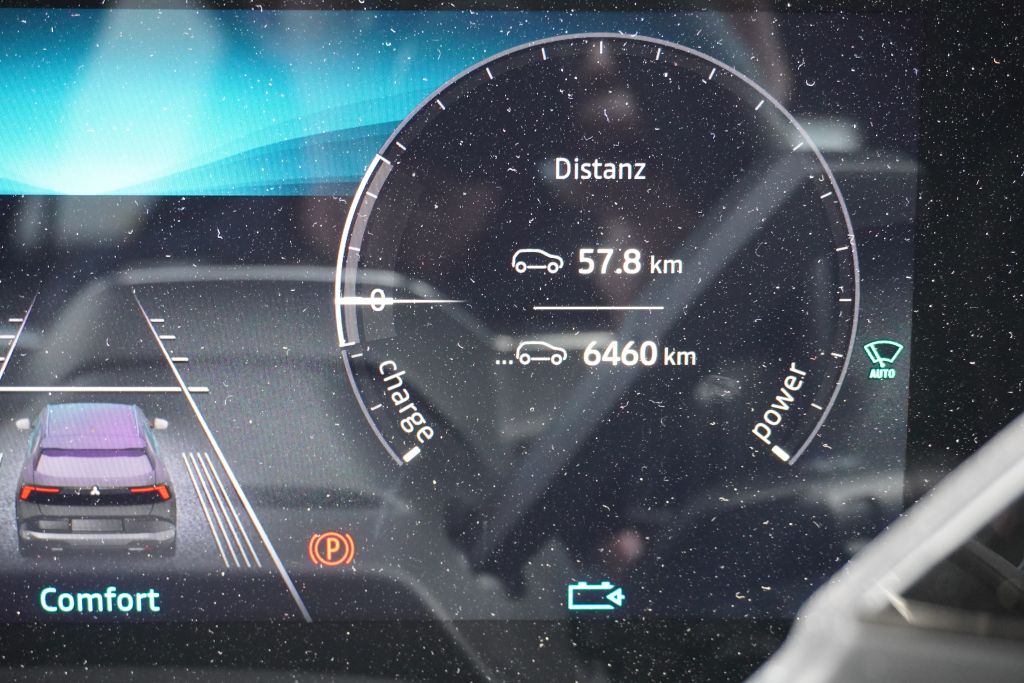 Nun aber Kabel raus aus der Wallbox und auf die Piste. Der Mitsubishi zeigt uns eine Reichweite von 403 km an und wir wissen aus Erfahrung, es wird sicher weniger sein. Also auf in den Test. Auf den ersten Metern fällt uns auf, dass er weicher abgestimmt ist als der Franzose. Der Japaner schluckt die Bodenwelle sehr gekonnt. Nur wenn es dann auf Kurvenhatz geht, bleibt er etwas hinter seinem Spender her. Dies ist jedoch nicht schlimm, er fährt sich immer noch sportlich um Biegungen. Wohler fühlt er sich auf der Autobahn und hier hilft der Eclipse Cross dem Fahrer mit Assistenten, dass er entspannter am Ziel ankommt. Er fährt sicher dem Vordermann hinterher, bleibt in der Spur und liesst meistens die Temposchilder korrekt. Er warnt den Fahrer mit einem angenehmen Ton, wenn er zu schnell unterwegs ist. Wenn es doch nervt, der kann es auch ausschalten. Nun weiss jeder was jetzt kommt. Genau die Abrechnung wie weit der Mitsubishi kommt. In unserem Test kam er auf 370 km. Es herrschten kalte Temperaturen und wer sich so richtig Mühe gibt, der kommt sicher knapp über 400 km.