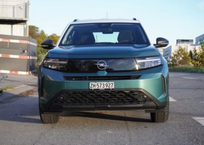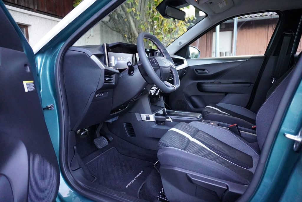 Bei uns steht der Hybrid-Antrieb mit dem 1.2-Liter-Benziner zur Ausfahrt bereit. Fast haben wir es schon verlernt. Im Frontera müssen wir den Schlüssel aus der Tasche ziehen und in das Zündschloss stecken und drehen. Bei uns kam immer der Benziner als erstes zum Dienst. Auf den ersten Metern arbeiten Verbrenner und Elektro im Opel zusammen. Nach einer Weile wird der Benziner abgestellt und der Stromer arbeitet alleine. Lange Strecken schafft er nicht, doch das Zusammenspiel klappt recht gut und fast unmerklich. Einzig wenn man voll beschleunigt trommeln die drei Zylinder dann gegen das Trommelfell. Ansonsten fährt der Deutsche überall souverän durch, ohne gross auf zu trumpfen. Stösse kommen ab und an durch und Kurven nimmt der Frontera als Pflicht unter die Räder, aber nicht mehr. Gut, der Verbrauch pendelte sich bei uns bei 5.5 Liter auf 100 km ein.