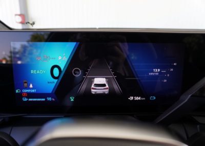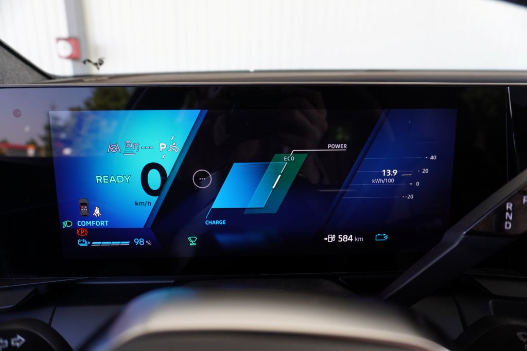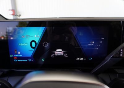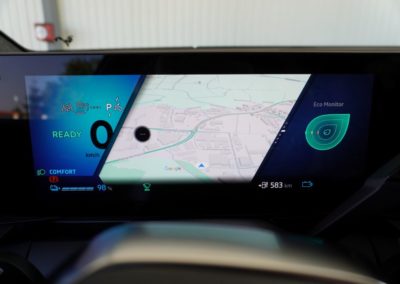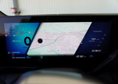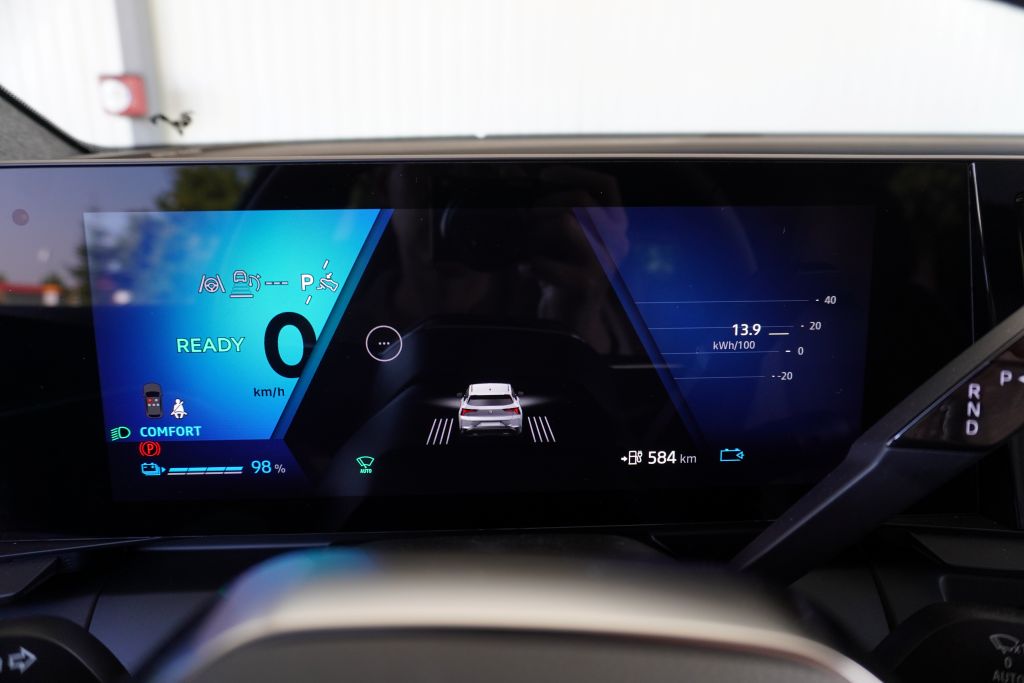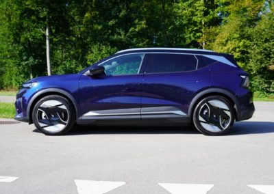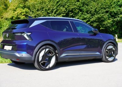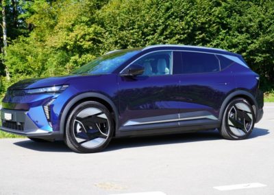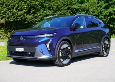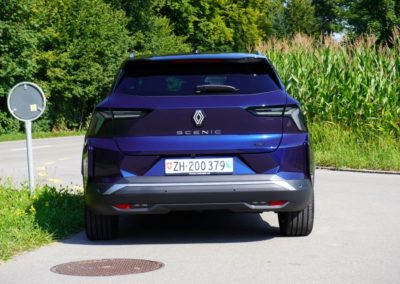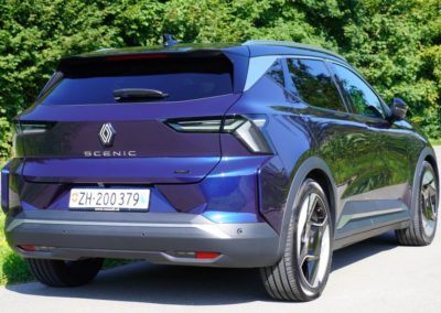 Ganz erstaunt lesen wir die Reichweite von 600 km ab. Aus Erfahrung wissen wir, dass es in der Wirklichkeit anders aussieht. Wir gehen auf die Strasse und probieren es aus. Unterwegs bemerken wir zum Vorgänger, dass der neue Scenic straffer über Bodenwellen rollt. Doch für die weite Reise ist der Renault immer noch ein guter Begleiter. Die kurvigen Strecken nimmt der Franzose recht gut unter die Reifen und lässt den Fahrer nicht im Stich und regelt im Notfall gut mit dem ESP. Mit seinen 218 PS reisst er keine Bäume aus, aber er schwimmt in der oberen Hälfte des Individualverkehr mit. In den verschiedenen Fahrmodi merkt man fast keinen Unterschied ausser bei Eco. Hier wird das Ansprechen des Gaspedal gedrosselt. Per Padels am Lenkrad lässt sich in drei Stufen die Rekuperation steuern. Leider beherrscht der Scenic kein One-Pedal-drive, wo man fast nie das Bremspedal brauchen würde und nur der Elektromotor die Bremswirkung übernimmt. Nun zurück von unserer Reise und wir stellen fest, was wir anfangs vermutet haben. Die 600 knackt der Franzose nicht, doch bei uns kommt er stolze 475 km weit.