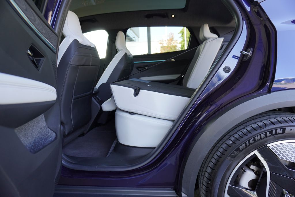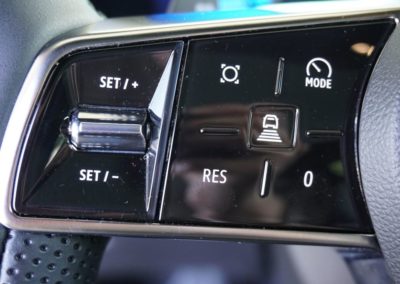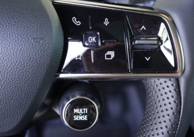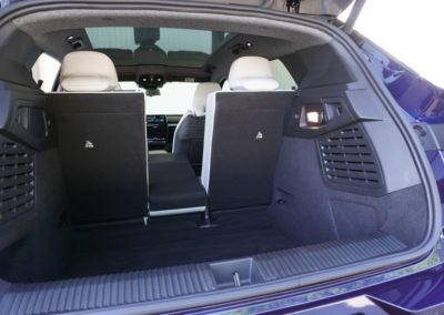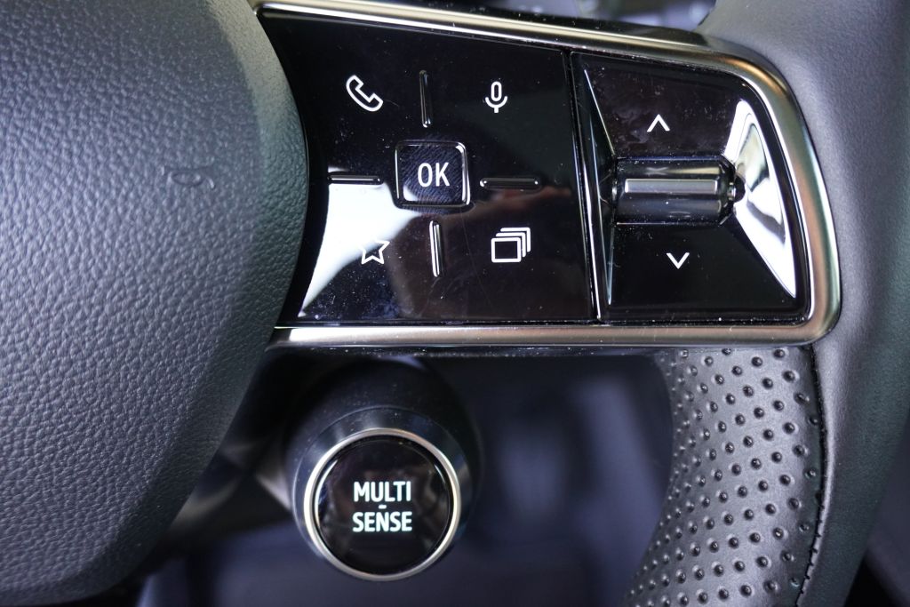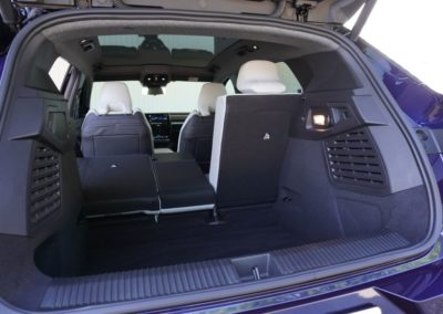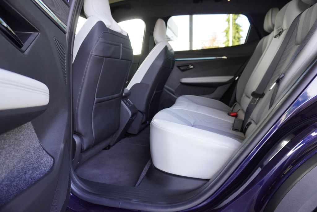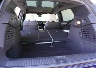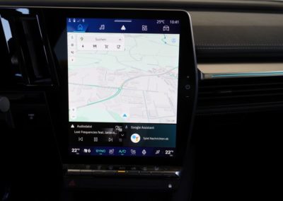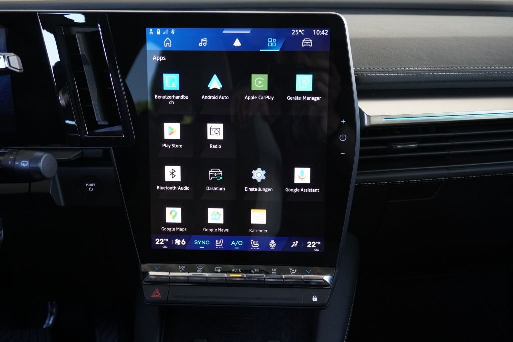 Im Innern sieht es wie im Mégane aus. Einzig was auffällt: Der Wählhebel in der Mittelkonsole ist weg und wanderte hinter das Lenkrad. Die ersten paar Fahrten war es sehr gewöhnungsbedürftig. Etwas Gewöhnung brauchen auch die Tasten auf den Lenkrad, die in Touch gehalten sind und ab und an falsch getroffen werden. Ganz bequem, wie man es von den Franzosen gewohnt ist, sitzt man in der ersten Reihe. Vor dem Lenkrad erstreckt sich ein breites Display. Es lässt sich in verschiedenen Varianten anzeigen. Gleich daneben thront das Infotainment-Display in Hochformat. Es lässt sich recht einfach bedienen und durch sein Format lassen sich viele Informationen von Apple-Car-Play oder Android-Auto darstellen. Leider haben sie bei Renault auch die Klimasteuerung auf den Touchscreen verlegt. Durch den Wählhebel hinter dem Lenkrad gibt es Luft in der Mittelkonsole, so kann man mit der Partnerin um die Beine herum intim werden. Zum Glück ist der Durchgang nicht bis zum Boden, womit die Gefahr nicht besteht Flaschen etc. vom Beifahrer in den Fahrerraum rollt. In der zweiten Reihe sitzen drei Personen gerade noch komod. Zu Zweit ist es viel angenehmer. Man geniesst gute Kopffreiheit, trotz Glasdach. Denn anders als normal ist kein Rollo vorhanden um die Sonne draussen zu halten. Im Scenic können Felder elektrisch angesteuert werden, die dann milchig oder klar sind. Somit kann auf das Rollo verzichtet werden. Im Kofferraum bringt man noch gute 545 Liter unter.